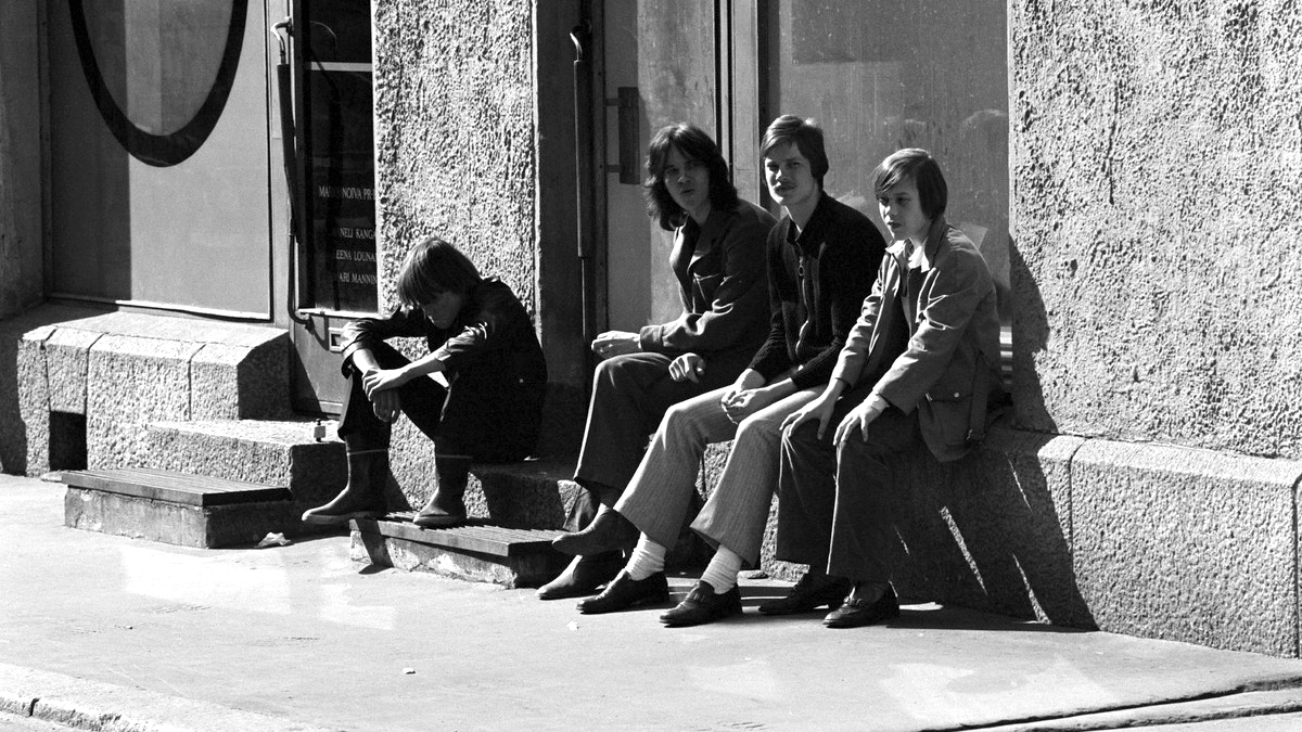 Kuva: Eeva Rista 1970. Helsingin kaupunginmuseo. Kuvassa nuorisoa Kristianinkadulla.